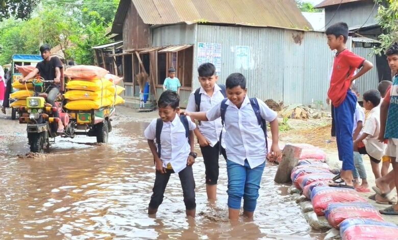 বাঞ্ছারামপুর ছলিমাবাদ হোসেনপুর স্কুল মোড়ে জলাবদ্ধতা: দুর্ভোগে শিক্ষার্থী ও এলাকাবাসী